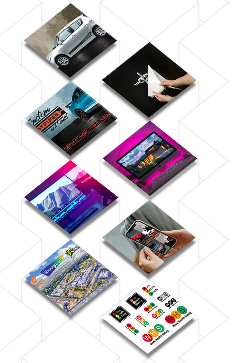 Digital elements such as web banners or elements (images) to insert into your existing web site. Business card designs, logo design, advertising material such as leaflets or flyers provided ready to print.Advertising videos in desktop or mobile formats to publish on TikTok or YouTube used to promote your business or service. Your business design elements and branding can be incorporated into the video. Script writing and music soundtrack also available. Visit our YouTube channel to view sample videos.Vinyl lettering and decals to apply to your vehicle or substrates to promote your brand or provide information. Decals are supplied ready to apply and posted to your location. Corflute signage using vinyl text and graphics in sizes up to 900mm x 1220mm are also available.